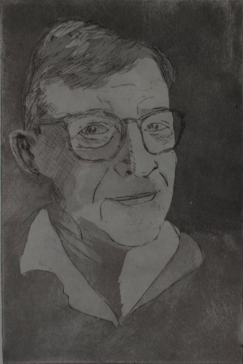 Zelfportret 2022, ets en aquatint op Japans papier, 10 x 15.