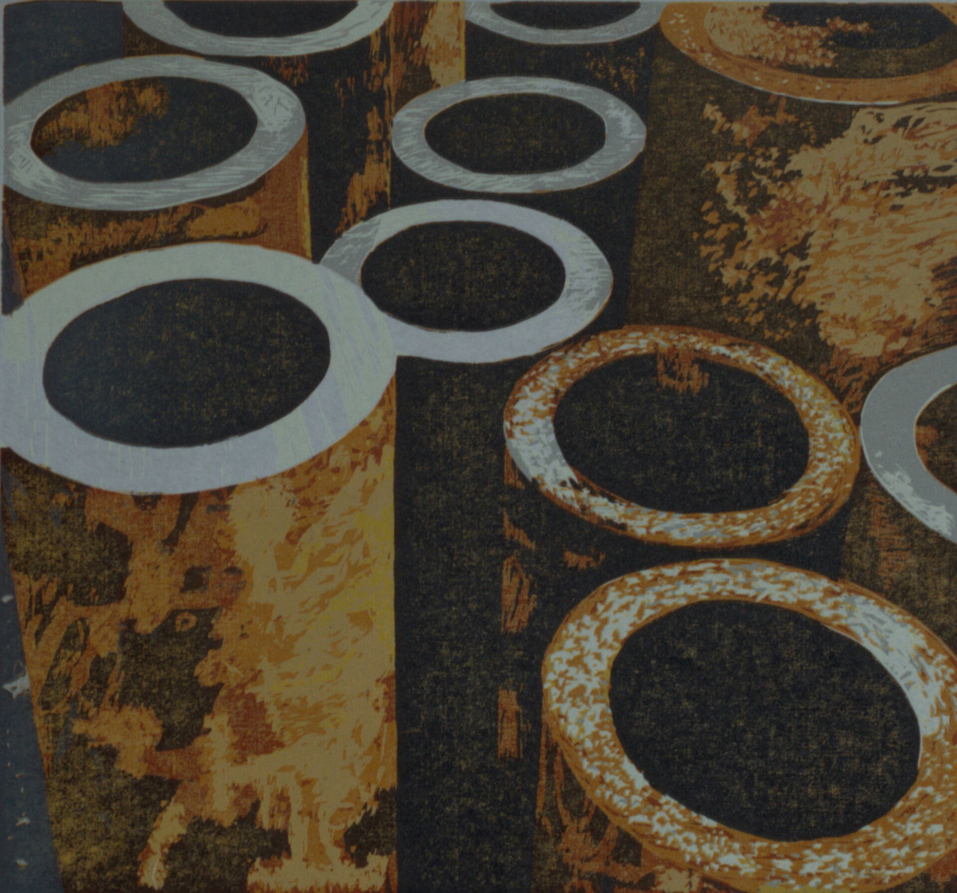 Buizen, 2020. Houtsnede op Japans papier, 29x27 cm (papier 41x30,), oplage 10.