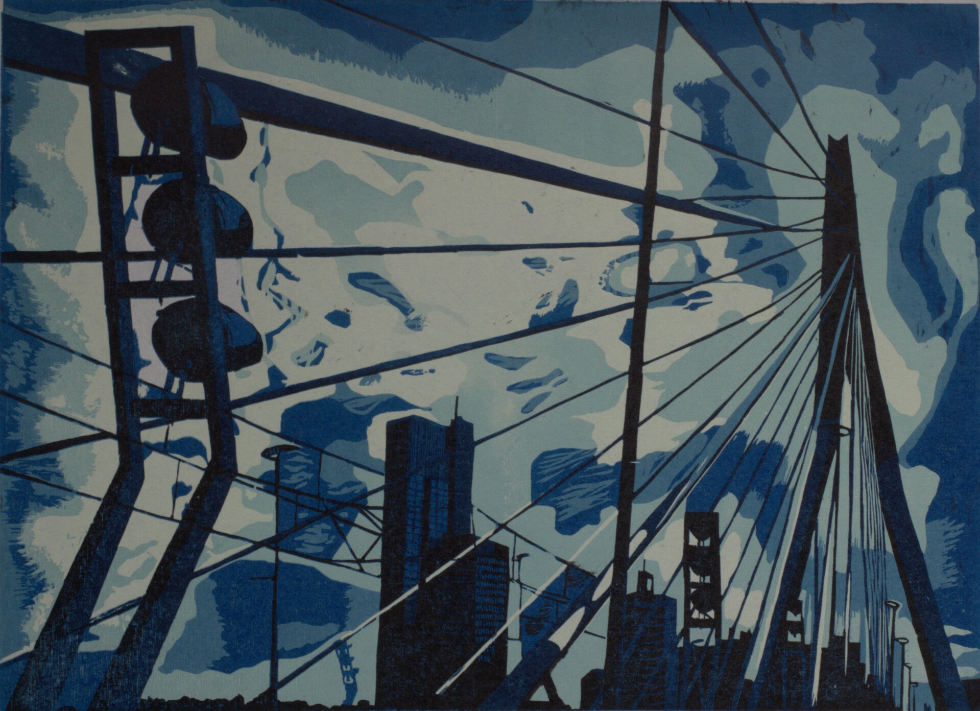 Erasmusbrug, 2021. Houtsnede op Japans papier, 53,5x39 cm (papier 58x42). 2021 oplage: 8.